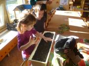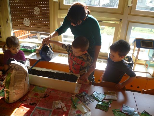 Zadani cilj, ki smo si ga zadali je, da bi otroci pridobili znanje o tem, kako posejemo seme v sejančke in kaj je za rast semen potrebno. Otroci so imeli na razpolago različna semena (drobnjak, peteršilj, meto, meliso, baziliko in timijan), s katerimi so se predhodno seznanili preko čutil. Imeli so možnost tipanja, vonjanja, primerjave semena po velikosti, barvi in sami embalaži. Otroci so si samostojno izbirali semena zelišč ter jih samostojno posejali v predalnik sejančka. Po končanem delu smo odložili sejanček na okensko polico. Sproti bomo spremljali spremembe v sejančku ter jih zabeležili v dnevnik.