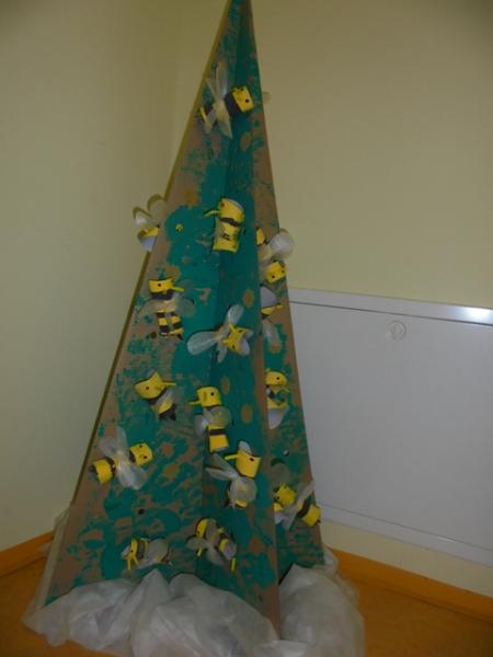 Praznični čas smo si polepšali s praznično dekoracijo, ki je večinoma izvirala iz odpadne embalaže in naravnih materialov.