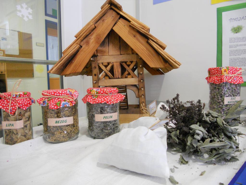 Tako je v jesenskih mesecih najprej nastal zeliščni vrt, ki ga bogatijo različne dišavnice in zelišča. Da bi vse ostalo ločeno tudi po nekaj mesecih, so se zelišča ločila s kamenčki različnih velikosti, ki sta jih snovalki vrtička nabrali ob reki Sori. Tako je zeliščni vrt kmalu postal tudi del Čutne poti, ki počasi nastaja v naši enoti. V mesecu novembru smo pedagoške delavke vsebine zeliščnega vrta prenesle tudi na hodnike enote in v naše igralnice. Pripravile smo zeliščne kotičke, v katerih so pripravljeni zeliščni snopki, zeliščne vrečke in lončki, vsi lično opremljeni z imeni zelišča, ki se v njih skriva. Vsi kotički vsebujejo tudi krajše opise rastlin, kje jih najdemo, zakaj jih uporabljamo in kako jih pripravimo ter večji herbarij, v katerem so zbrana tudi druga zelišča, rastline in drevesa.